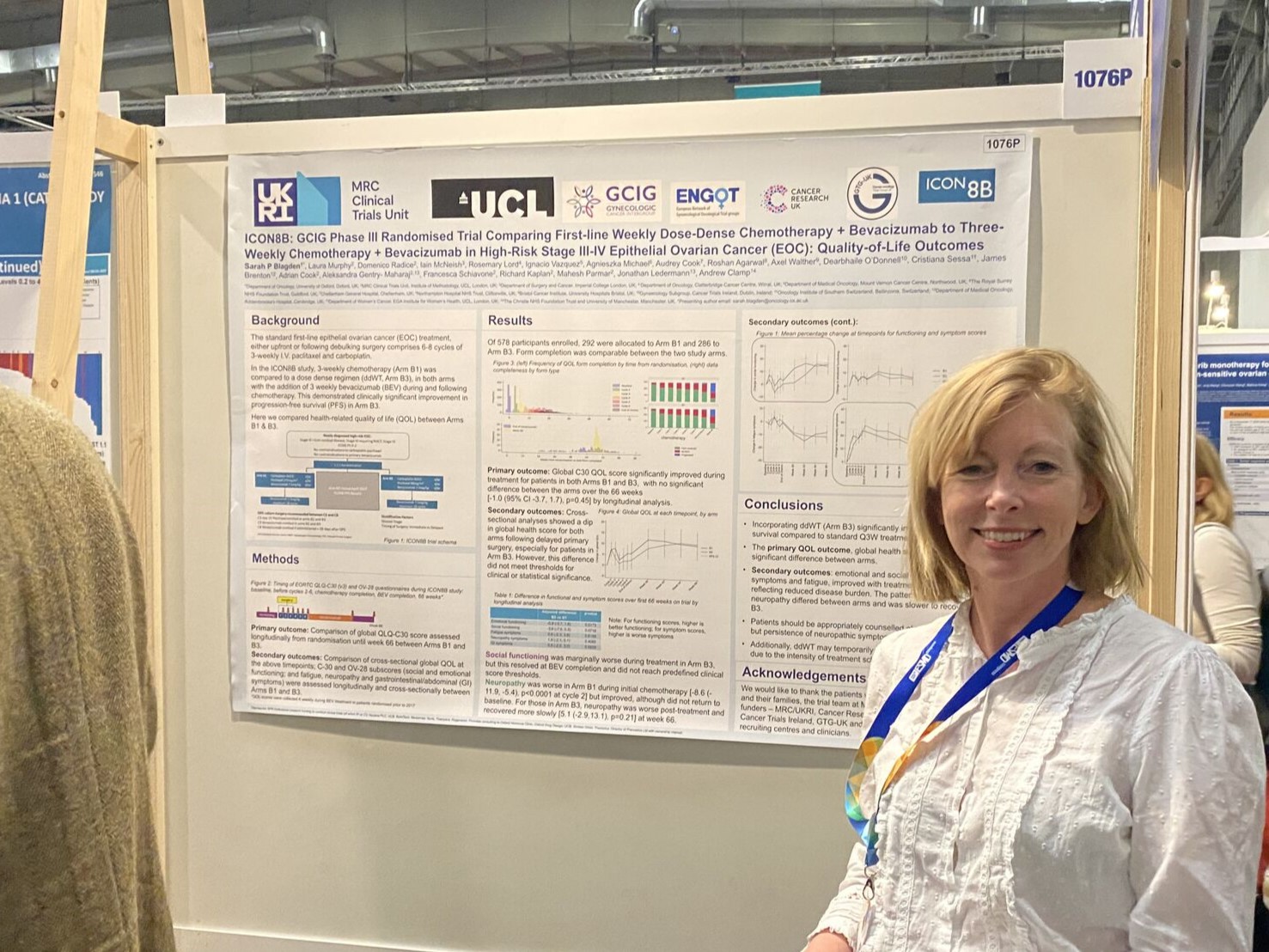 Sarah Blagden, Professor of Experimental Oncology and Lead for the Oxford Cancer Trials Office, presented health-related quality of life data from ICON8B: a Phase III randomised trial comparing first-line weekly dose-dense chemotherapy plus bevacizumab to the standard three-weekly chemotherapy plus bevacizumab in patients with high-risk stage III-IV epithelial ovarian cancer.